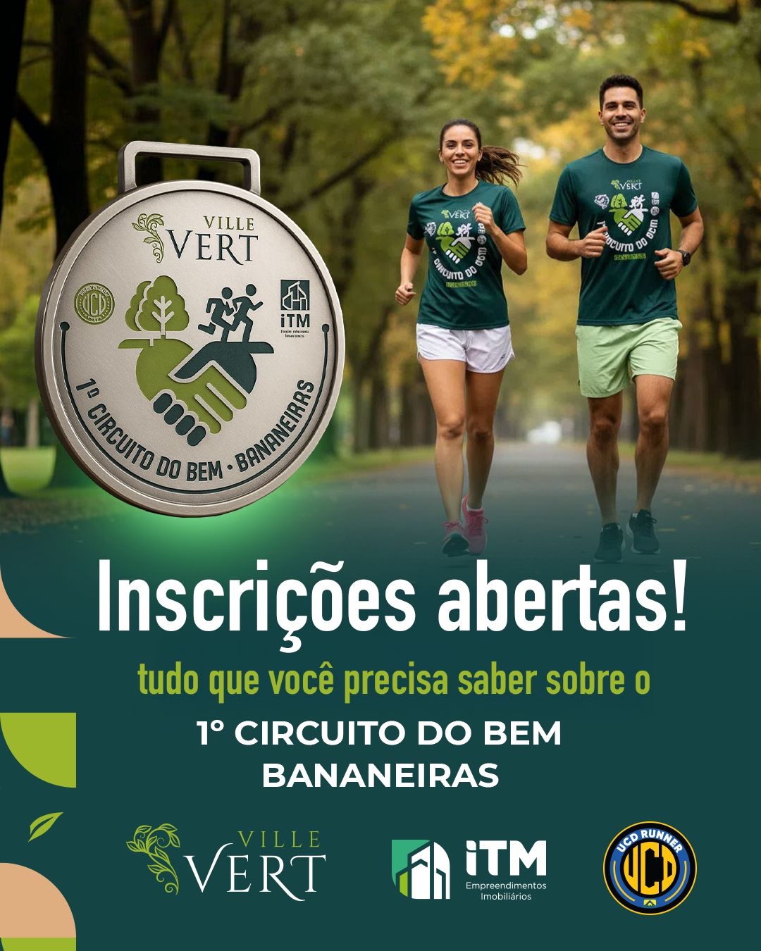 A contagem regressiva começou! As inscrições para o 1° Circuito do Bem Bananeiras já estão abertas, um evento que vai unir esporte, solidariedade e boas energias no Ville Vert!