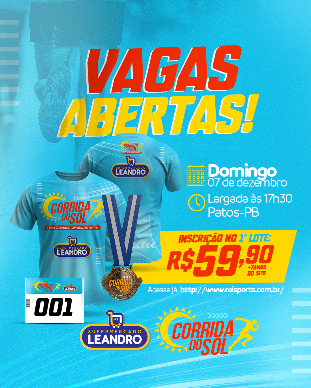 Prepare-se para viver uma tarde inesquecível de saúde, esporte e energia positiva! No dia 07 de dezembro de 2025, o Supermercado Leandro realiza a Corrida do Sol, um evento que promete movimentar Patos com muita animação e espírito esportivo.